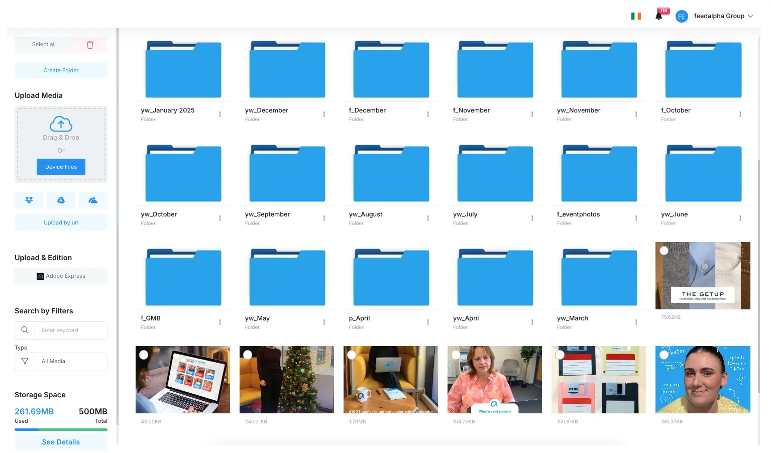 Keep all your social media content organised with Feedalpha’s Storage.